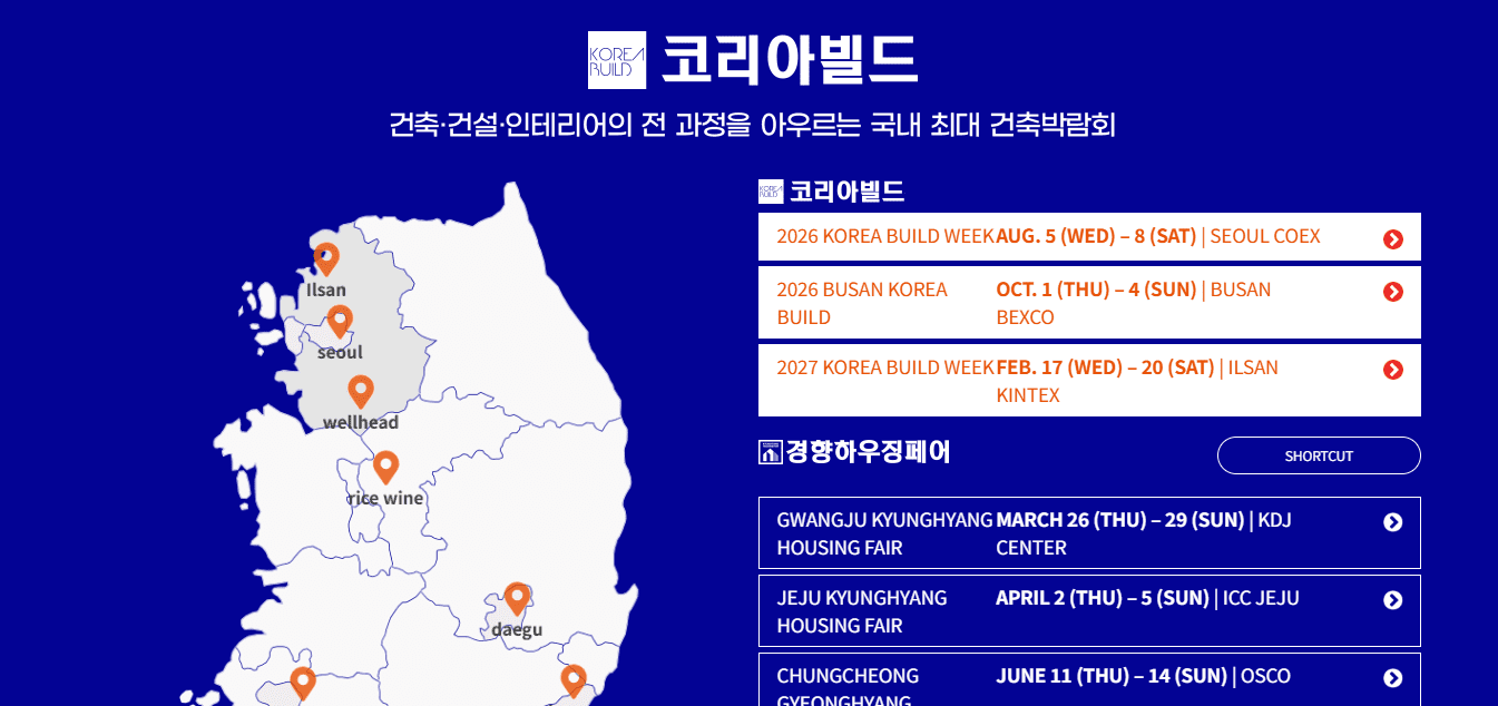 Korea Build Week 2026 is a comprehensive exhibition covering architecture, interior design, construction materials, and smart living solutions.